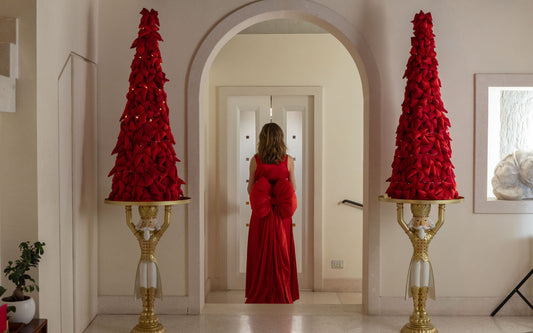 Alberi di Natale rossi con fiocchi in velluto 860-1260mm