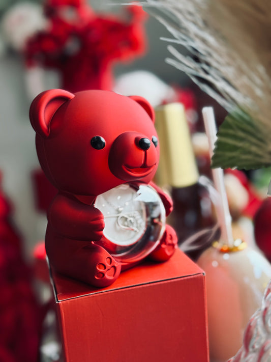 Orsetto rosso con rosa e collana