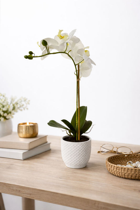 Orchidea con vasetto ovale bianco|Belda