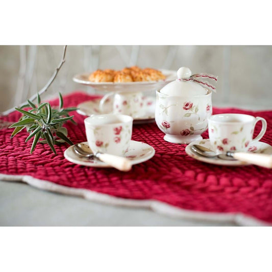 TAZZA JUMBO BIANCA CON ROSE ,CON PIATTINO