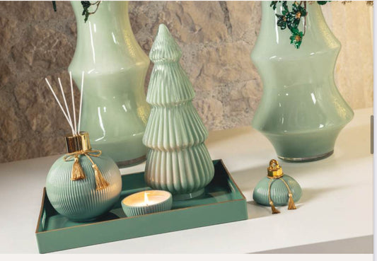 Sfera di natale verde e oro con candela