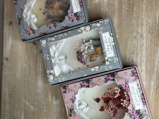 Cera profumata con fantasia floreale rosa