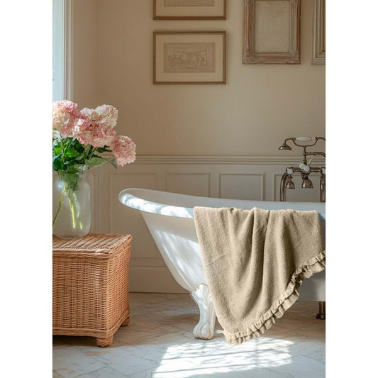 Telo bagno con balza panna-sabbia in cotone| Blanc Mariclò