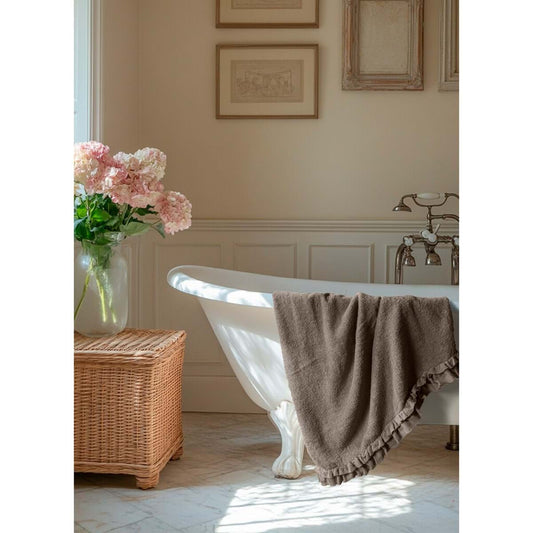 Telo bagno tortora con gala in voile 110x150cm | Blanc Mariclò