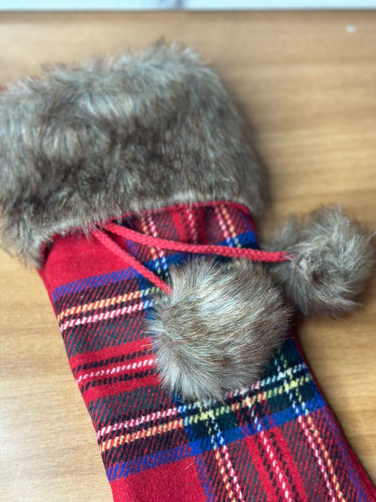 Calza della befana natalizia con motivo scozzese