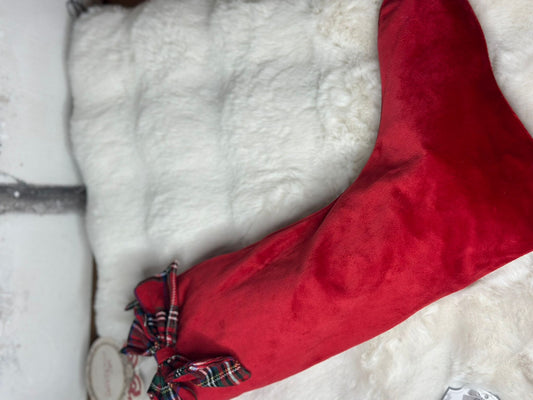 Calza della befana natalizia rossa con motivo scozzese