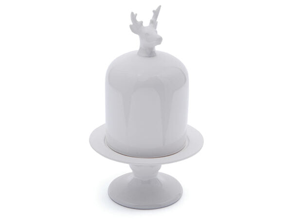 Questa elegante alzatina natalizia è un pezzo unico per decorare la tua tavola durante le festività. Realizzata in ceramica bianca, presenta un design raffinato con una cupola a forma di campana abbellita da una figura di renna in cima, che conferisce un tocco festoso e sofisticato. La base rialzata consente di esporre dolcetti, piccoli dolci o decorazioni natalizie, creando un effetto elegante e accattivante. Perfetta per aggiungere un tocco di magia e bellezza alla tua casa durante il periodo natalizio, questa alzatina è ideale sia per l'uso quotidiano che per le occasioni speciali.