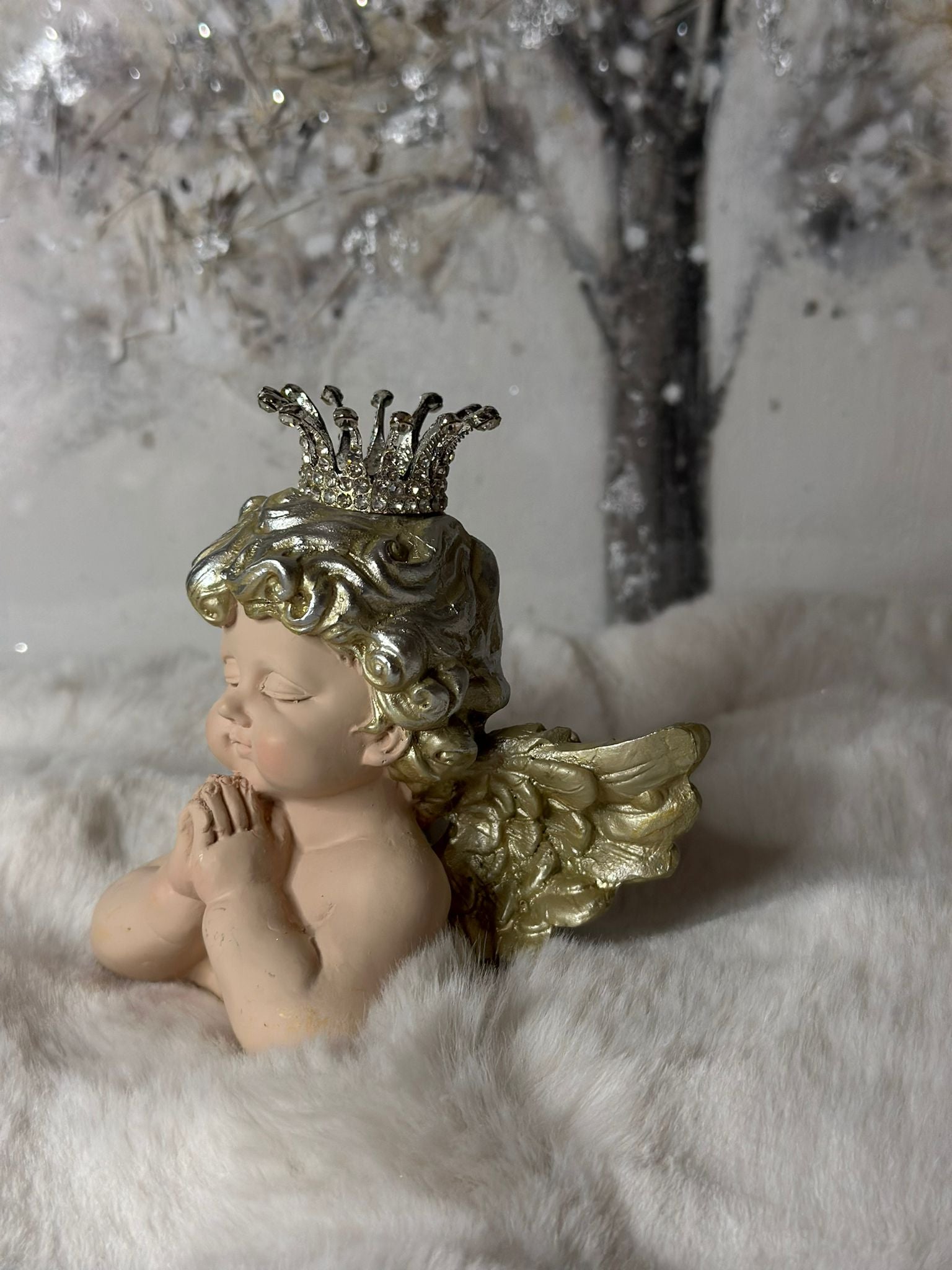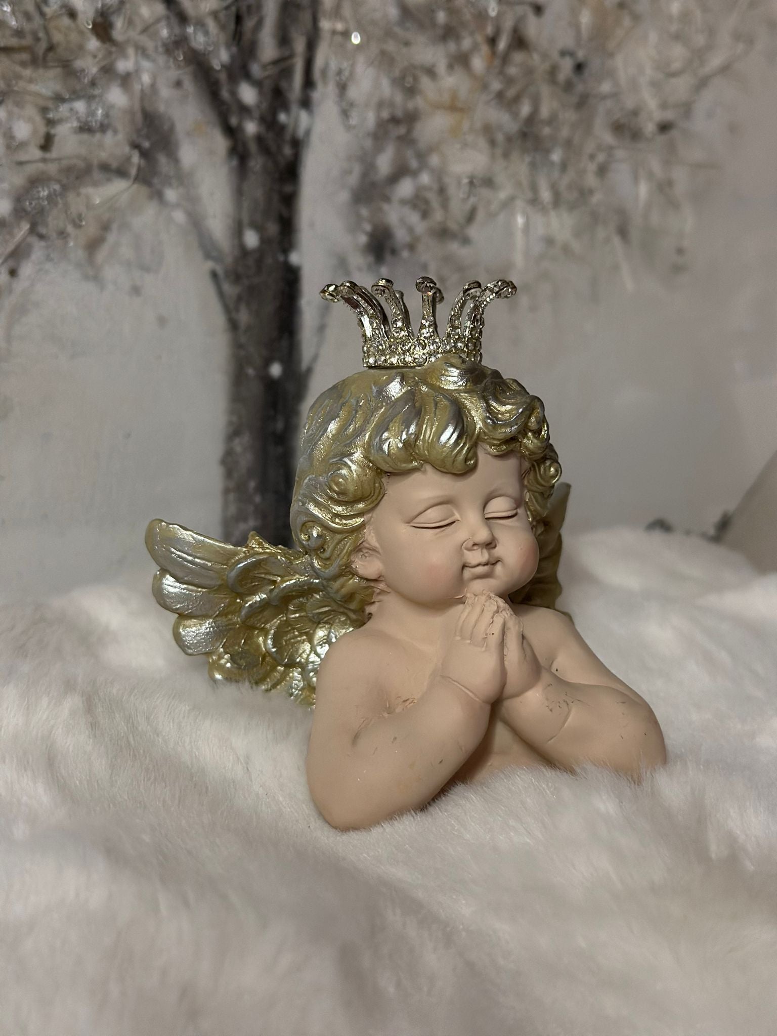 Questo raffinato angelo decorativo in resina è un perfetto elemento per aggiungere magia e serenità a qualsiasi ambiente. Realizzato con dettagli intricati, l'angelo ha ali incantevoli e una corona luccicante in testa aggiunge un tocco di regalità, mentre la graziosa posa suggerisce contemplazione e pace. Ideale per decorazioni natalizie, questo angelo può essere un splendido centro tavola o un delicato accento su una mensola.