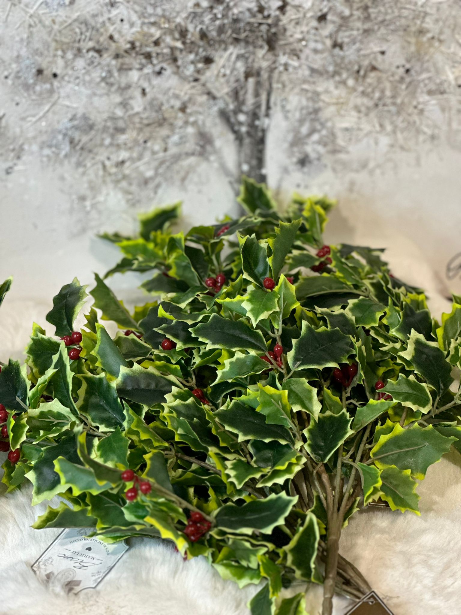Queste bacche artificiali rappresentano una perfetta aggiunta decorativa per la tua casa durante le festività natalizie. Le foglie sono realisticamente dettagliate, con bordi variegati di un verde intenso e punte color verde chiaro, che imitano fedelmente l'aspetto delle foglie di agrifoglio. Le piccole bacche rosse distribuite tra le foglie aggiungono un tocco vivace e festoso. Il materiale di alta qualità assicura che possano essere utilizzate anno dopo anno senza perdere il loro aspetto.
