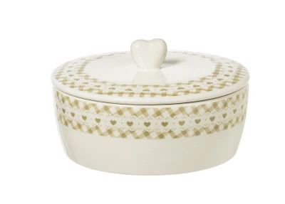 Rendi i tuoi biscotti ancora più speciali con la biscottiera L'arte di nacchi. La forma a cuore del pomello e il delizioso decoro renderanno la tua merenda un'opera d'arte. Realizzata con materiali di qualità, questa biscottiera è perfetta per ogni occasione.