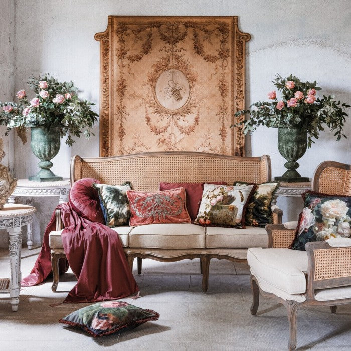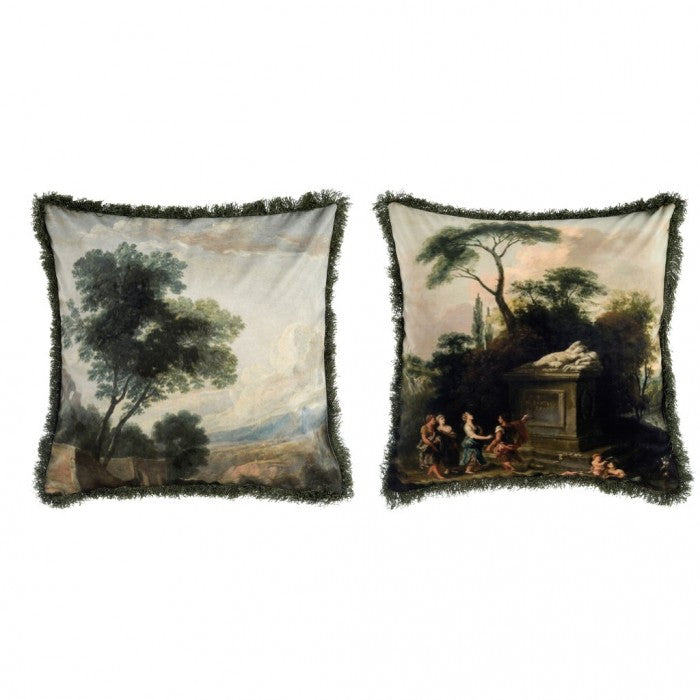 Cuscino verde con fantasia bosco in velluto| Blanc Mariclò
