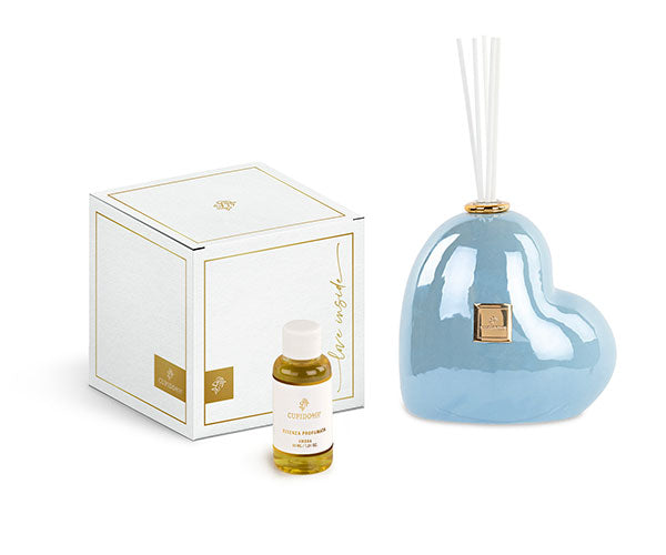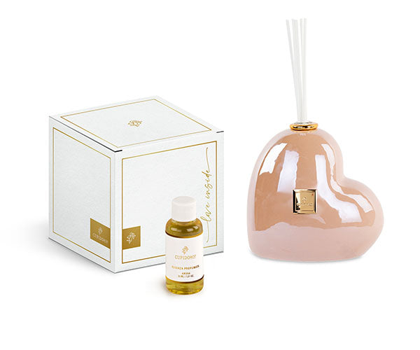 Diffusore in ceramica a forma di cuore, elegante soluzione per profumare gli ambienti con stile. Realizzato con materiali di qualità, diffonde fragranze delicate e durature, creando un'atmosfera accogliente in ogni stanza. La sua forma romantica lo rende la scelta ideale come bomboniera sofisticata per matrimoni, anniversari e occasioni speciali. Perfetto per chi apprezza i dettagli raffinati e desidera un accessorio che unisce funzionalità e bellezza estetica.