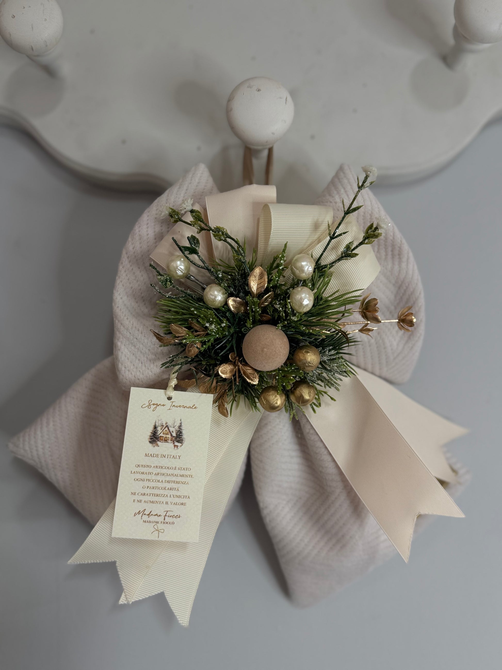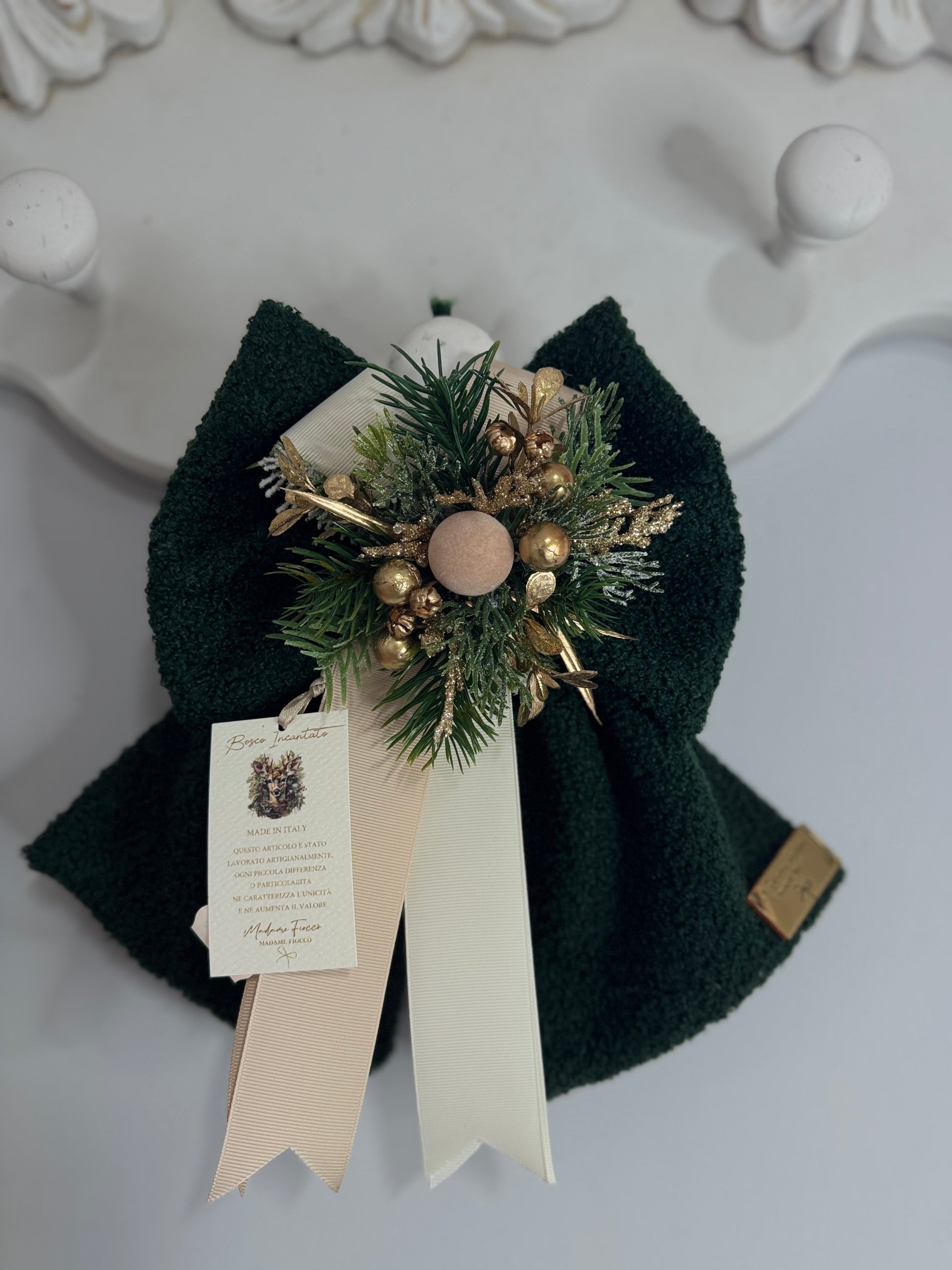 Il Fiocco Bosco Incantato è un decoro unico ispirato allo stile raffinato di Madame Fiocco. Con il suo design particolare e dettagli curati, aggiunge un tocco di charme e originalità a ogni ambiente. Perfetto per chi desidera un elemento decorativo che catturi l’attenzione e porti un’atmosfera magica e sofisticata nella propria casa o evento speciale. Un’idea regalo elegante e distintiva.