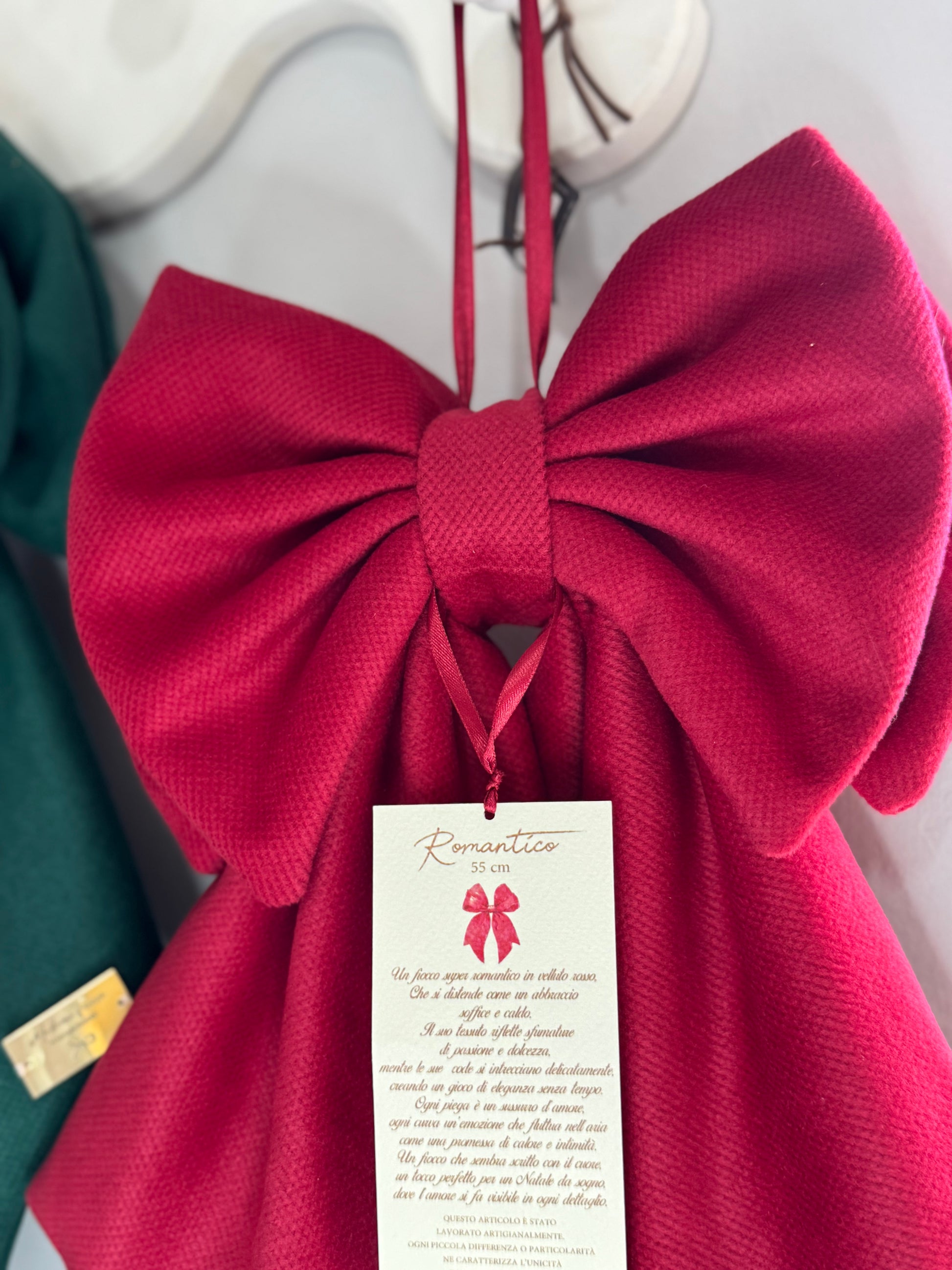 Aggiungi un tocco di eleganza e morbidezza ai tuoi ambienti con questo fiocco in velluto da 55 cm. Perfetto per decorazioni raffinate, regala un aspetto lussuoso a regali, tende o dettagli d’arredo. La sua morbidezza e il colore intenso valorizzano ogni spazio con stile e classe.