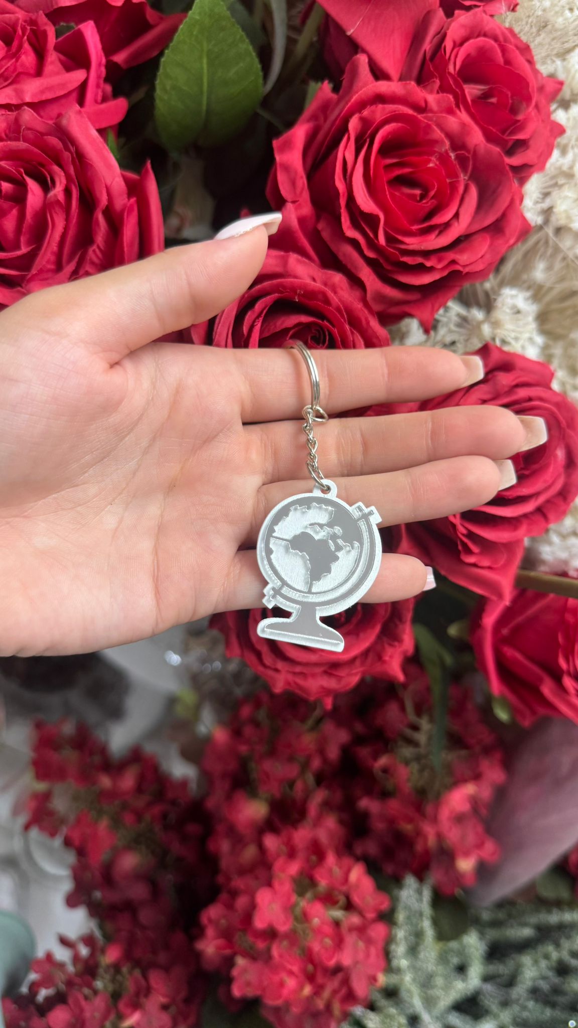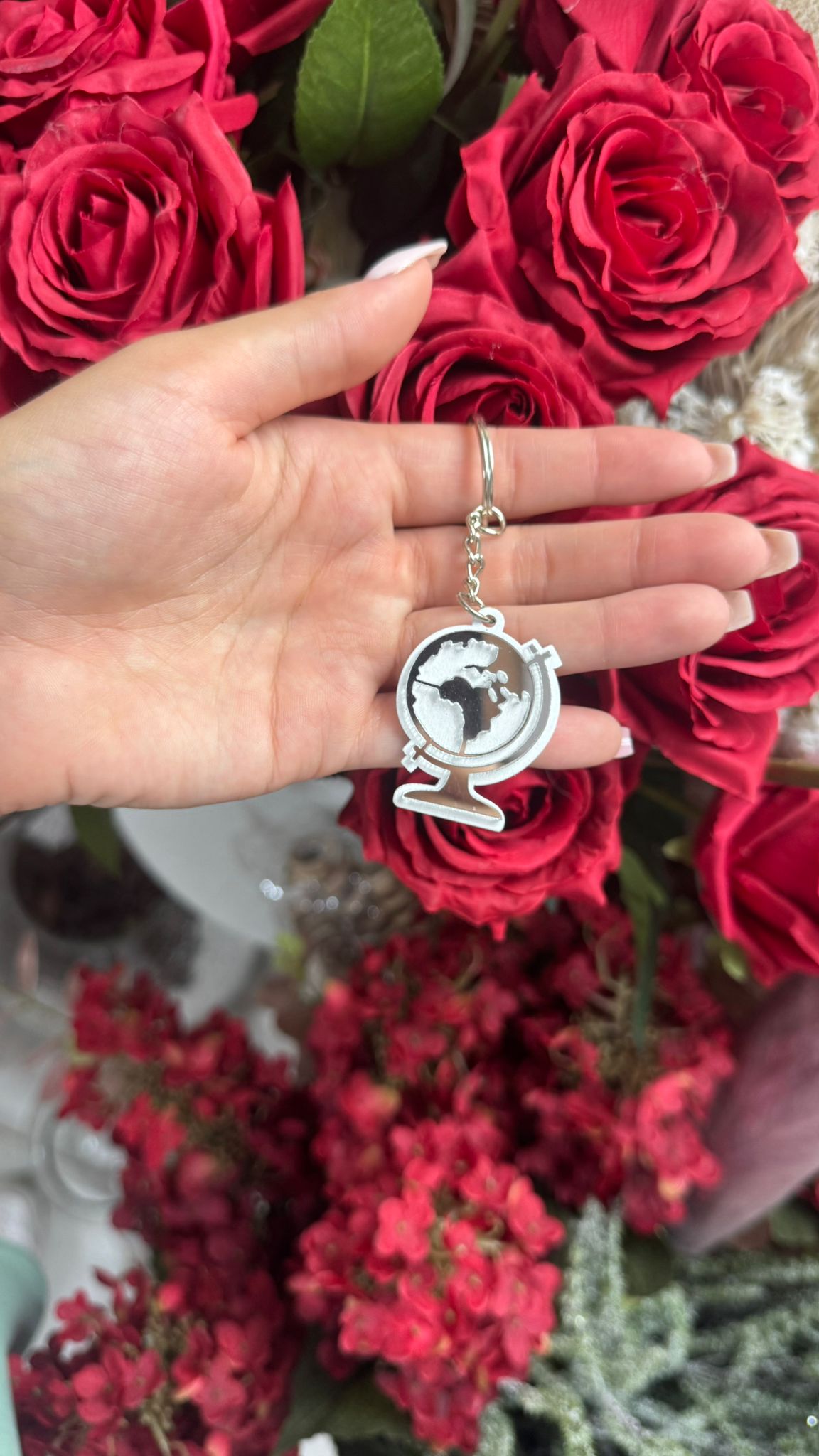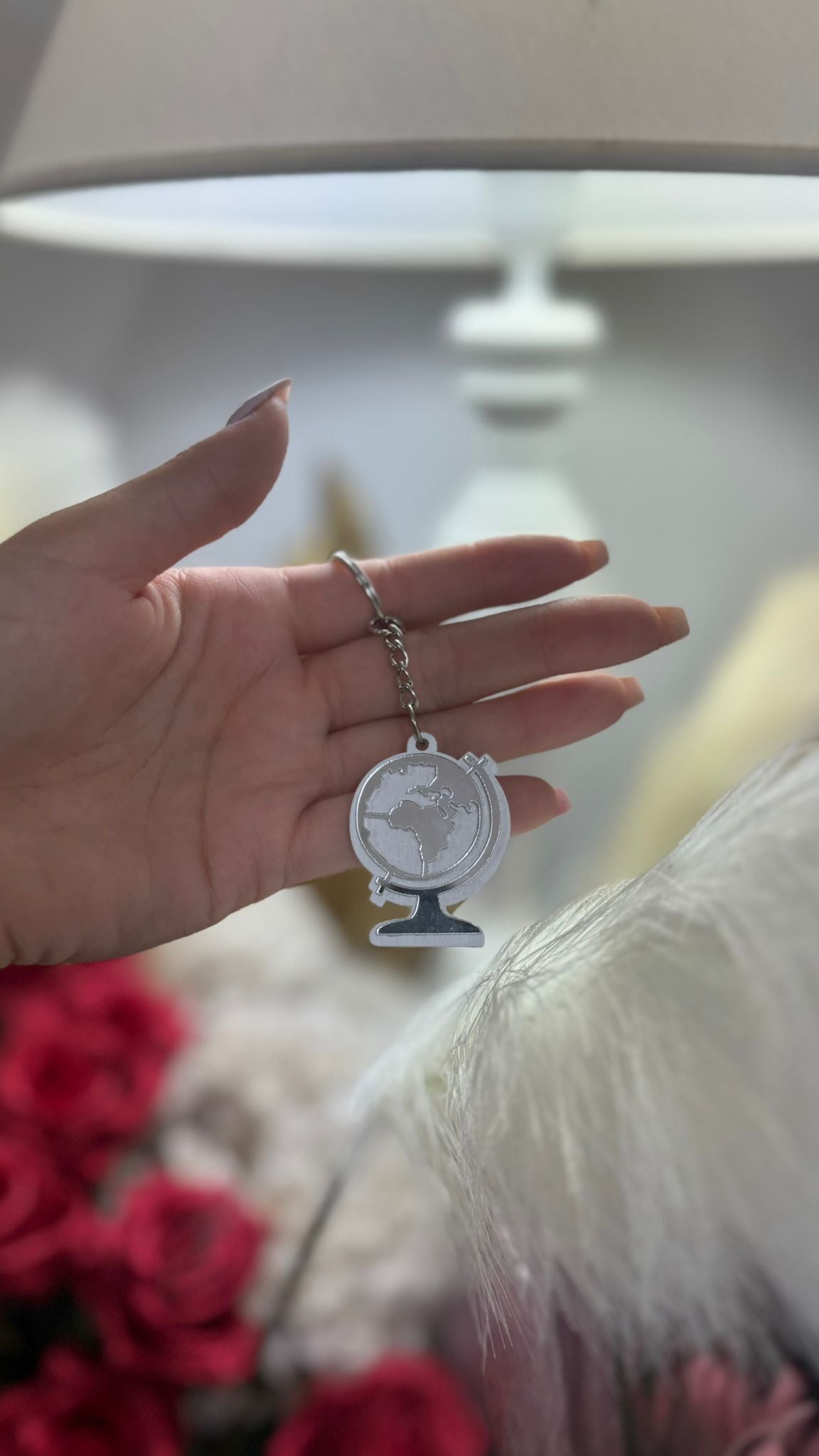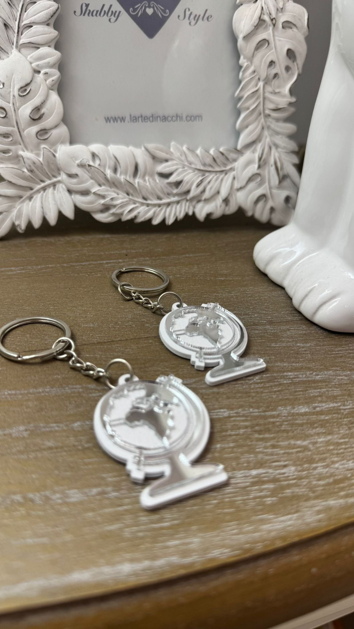Elegante portachiave a forma di mappamondo, ideale da abbinare al sacchetto coordinato. Un accessorio raffinato che si adatta perfettamente a ogni occasione, aggiungendo un tocco di classe ai tuoi oggetti personali. Per ulteriori informazioni, non esitare a contattarci.