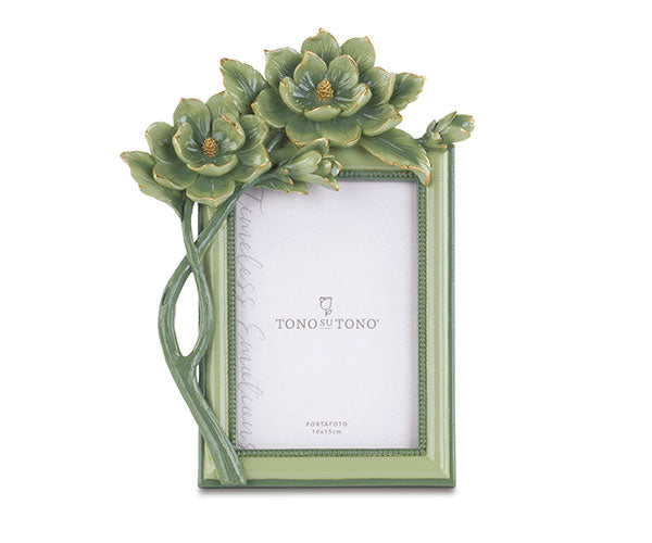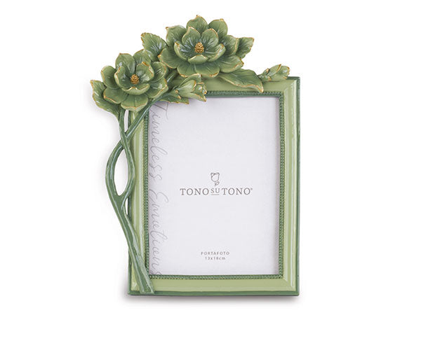 Portafoto con raffinato motivo floreale verde e dorato. Ideale per valorizzare i tuoi ricordi più preziosi, questo portafoto unisce eleganza e funzionalità, aggiungendo un tocco di classe a qualsiasi ambiente. Perfetto per esporre le tue foto con stile, dona calore e personalità a ogni spazio della casa o dell’ufficio.