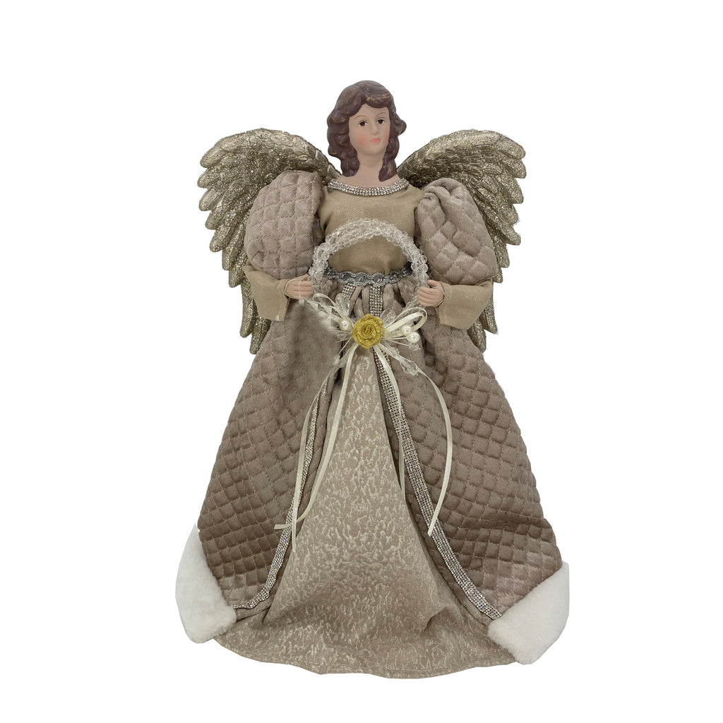 Elegante puntale per albero raffigurante un Angelo, perfetto per completare la decorazione natalizia con stile e raffinatezza. Realizzato in pregiato oro, questo accessorio misura 21x13x42 cm e aggiunge un tocco di serenità e bellezza al vostro albero di Natale. La figura angelica, simbolo di protezione e grazia, trasforma l'albero in un elemento decorativo ancora più suggestivo e significativo. Ideale per chi desidera una decorazione natalizia sofisticata e dal fascino senza tempo.