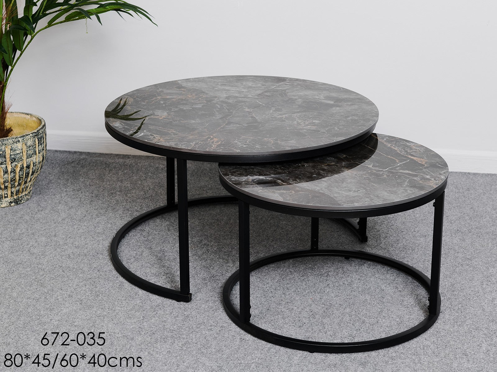 Descrizione | Tavolini impilabili rotondi Memphis S/2 80*45/60*40 cm |