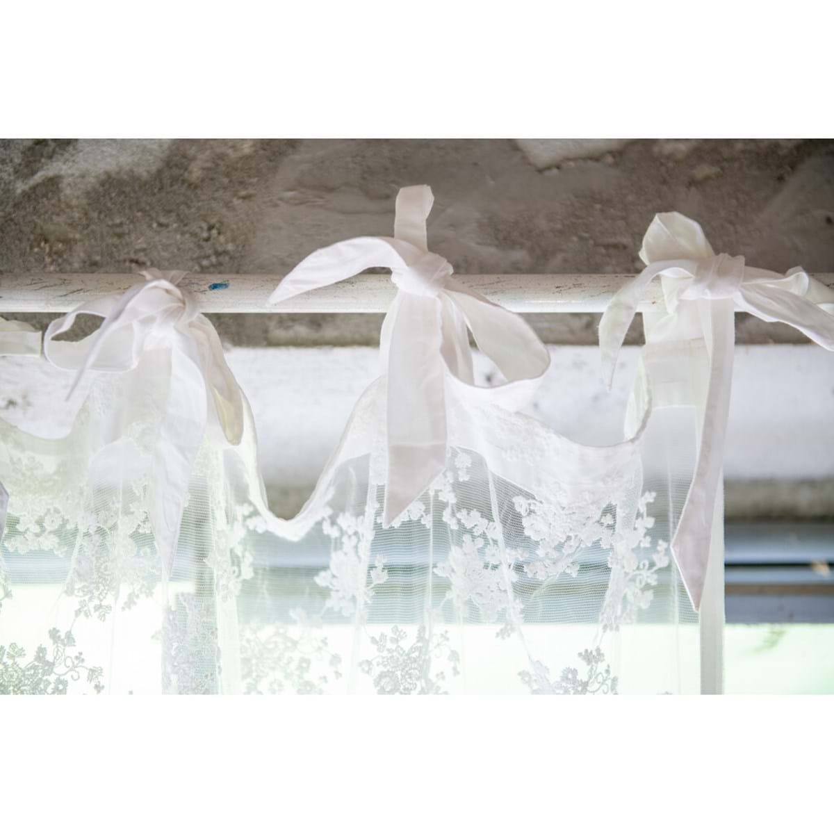 Tenda dotata di lacci per fiocchi, ideale per un tocco elegante. Dimensioni: 140 x 290 cm.