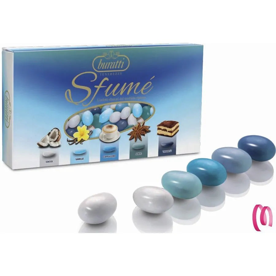 Confezione da 1 kg di confetti di diversi gusti e colori ripieni di una mandorla d'Avola avvolta da uno strato di cioccolato bianco aromatizzato con: cocco, vaniglia, cappuccino, anice e tiramisù.