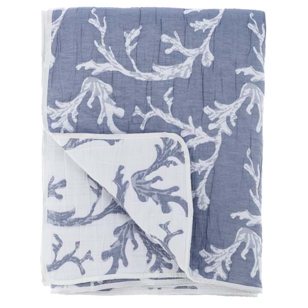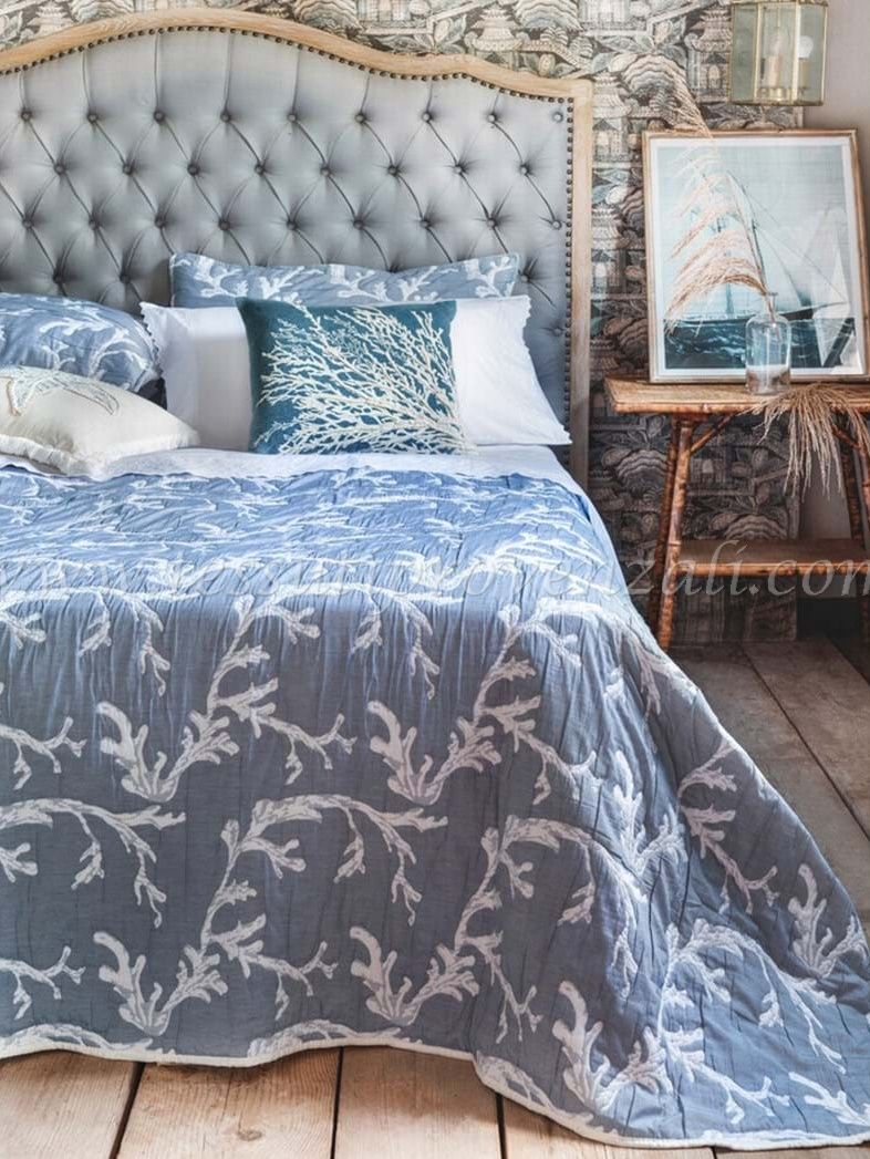 Splendido trapuntino matrimoniale decorato con ricami di coralli, ideale per una casa al mare o per chi ama queste decorazioni